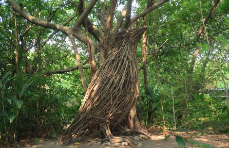 Large scale bird created by the sculptor’s and the local people hands turn into artifact.
