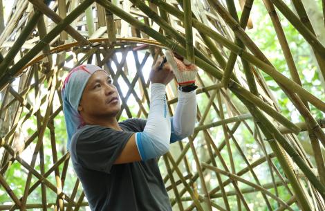 The title "Aerial" represents a flexible, adaptable state of being, while "Habitat" signifies the subtle, interconnected relationships among all living things. The artwork's three interwoven aerial root structures create a space for people to slow down, relax, and connect with their surroundings. It invites visitors to metaphorically enter the heart of the banyan, starting from its roots, to engage in a dialogue with nature and rediscover their relationship with the land.